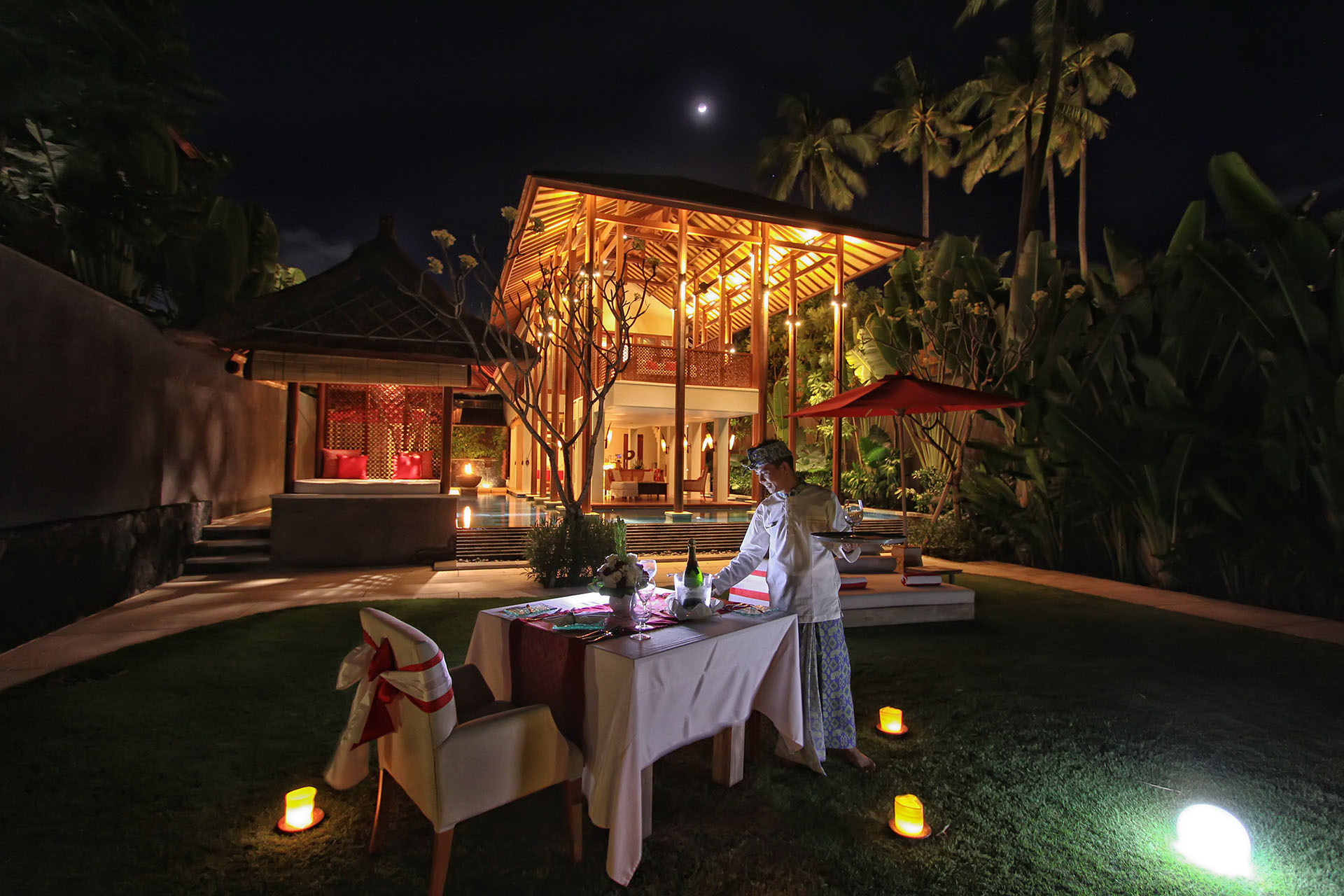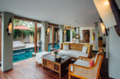 A beachfront paradise, Puri Kamadewa, is completed with a fully equipped media room/study on the ground floor and super-king suite with dressing room, en-suite, on the first floor. This villa is fitted with a personal kitchen including espresso machine, as well as on-demand movies, dedicated villa staff (including personal chef and butler), and complimentary Wi-Fi.