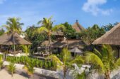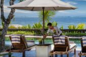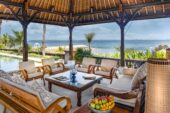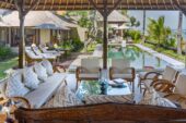 Named after the native tree that shades the temple guarding its entrance, Villa Cemara comprises a cluster of one- and two-storey alang-alang thatched pavilions inspired by the compound-style of traditional Balinese family homes and arranged around a 10-metre greenstone-tiled pool. Every room boasts boundless ocean views across the Lombok Strait to the islands of Nusa Penida and Nusa Lembongan.