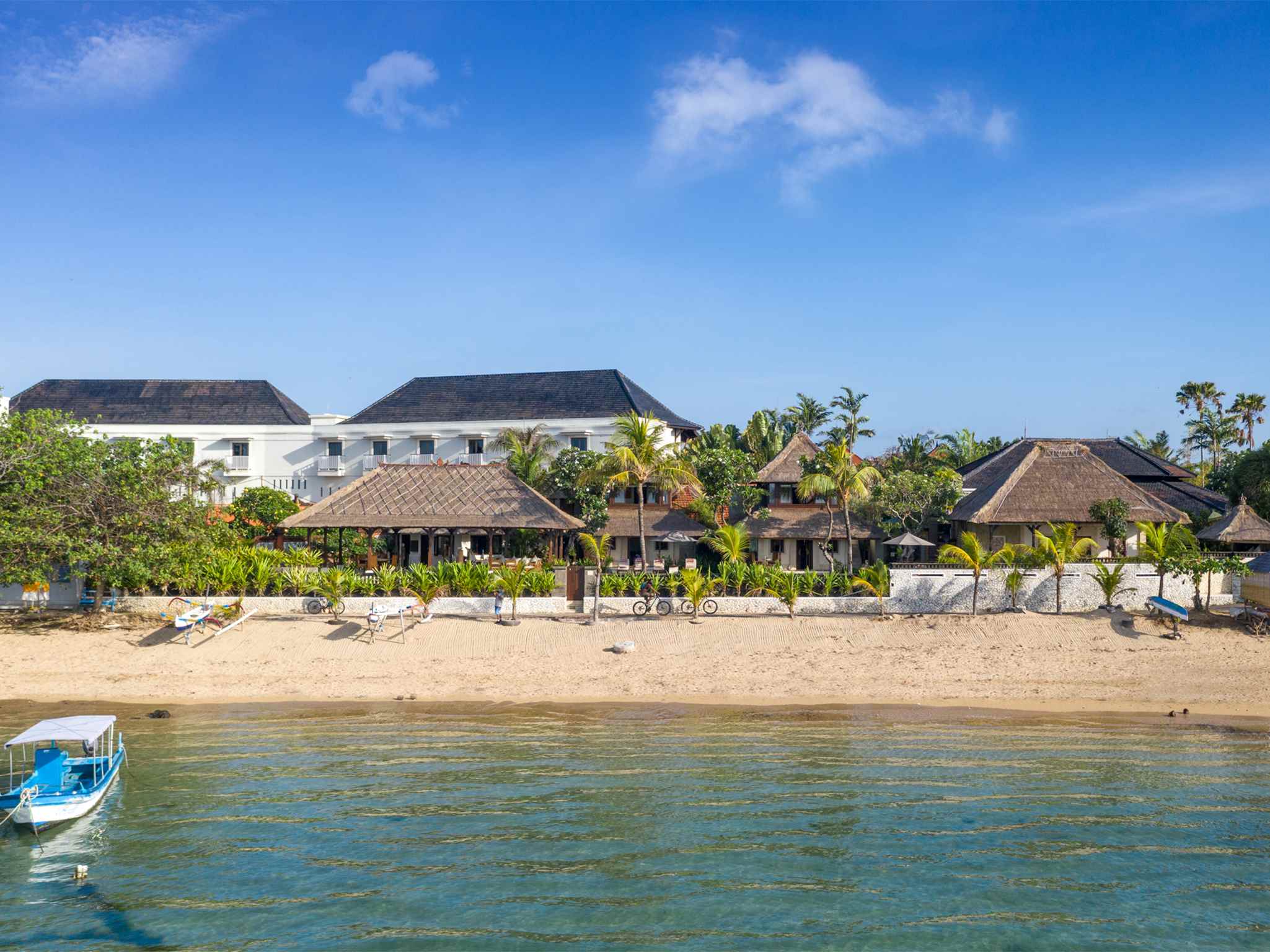 Absolute beachfront villas in Bali are few and far between. But holidaymakers seeking a blissful tropical vacation in a luxury villa with a laid-back beach vibe will find that five-bedroom Villa Cemara in Sanur on Bali’s south-eastern coast ticks all these boxes, and more. This private residence rests on 60 metres of beachfront land, with direct access to an expanse of golden sand and shallow, lagoon-like sea.