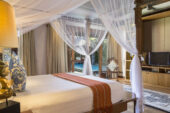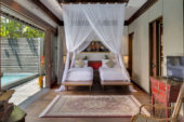 Just a hint of nostalgia can be found in its architecture, with five traditional Balinese-style pavilions set around two private swimming pools. At Villa Des Indes II, there’s no closeting yourself up, rather it’s all about open-concept living in breezy surroundings that are remarkably quiet given their proximity to Seminyak’s many attractions. Read a book at the shaded poolside balé, get an outdoor massage in absolute privacy on the massage terrace surrounded by lush greenery, or mix refreshing cocktails at the villa’s private bar. With plenty of room for everyone, this is the perfect option for a large group of friends and families who appreciate having their own space to retreat to, and a multitude of living areas for when they wish to socialise.