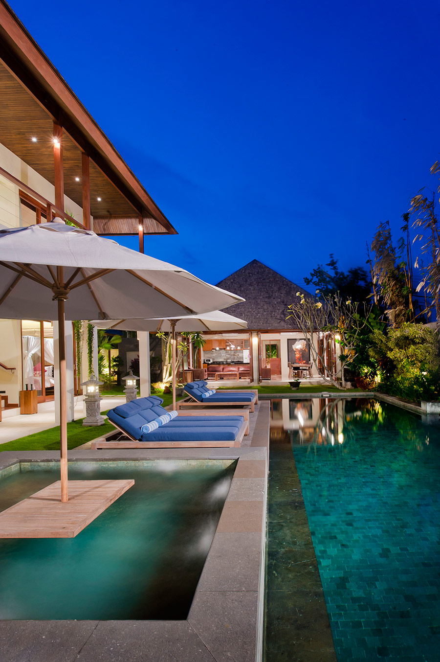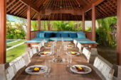 Completed in August 2010, the contemporary Balinese architecture of Villa Joss features a living room and dining room pavilion, a four bedroom pavilion, an entertainment room and business centre, and an open air ‘bale’ lounge pavilion in the spacious gardens with a 16-metre swimming pool and outdoor Jacuzzi. The architect’s other work can be seen in some of Seminyak’s finest venues including Ku De Ta. Villa Joss is named after the owner’s daughter.