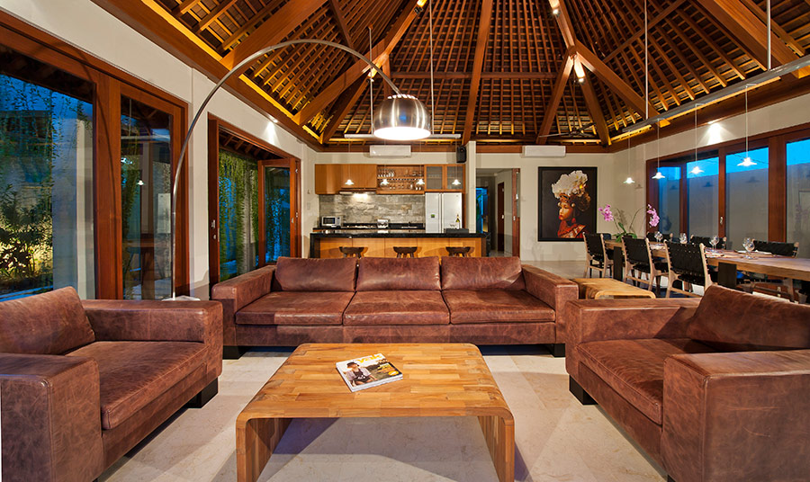 Designed by one of Bali’s premier architects, the quality of the design and craftsmanship is evident throughout this four-bedroom villa, making ample use of leather, recycled teak and other beautiful organic materials, as well as a remarkable collection of fine art and Majapahit period stone carvings, to capture the style and spirit of Bali.
