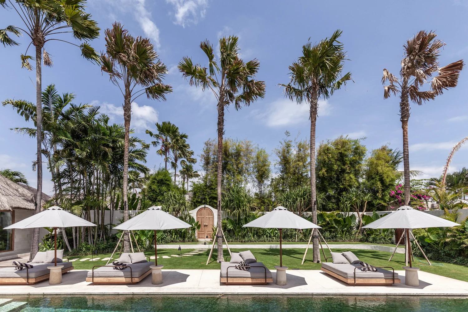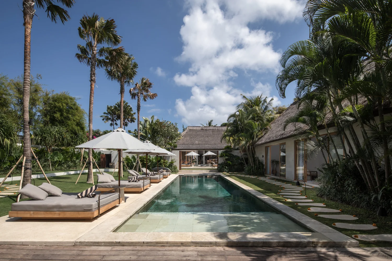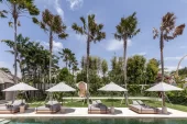 The villas feature teak and terrazzo interiors, natural on-trend furnishings, lush gardens and private swimming pools. Choose the 3 or 4 bedroom villa for a private getaway or combine villas into 7, or 10 bedrooms options and accommodate up to 20 guests.