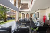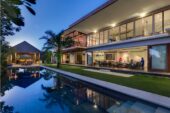 Bendega Rato is a stunning villa located amidst the rice fields of Canggu, minutes from a surf beach and popular restaurants and bars. For a four-bedroom villa, the sheer amount of living space is surprising. Everything is oversized for optimum sociability and comfort, from the double-height living room with huge sofas and a dining table that seats 12, to the stately bathtubs presiding over rice field views. There’s an air-conditioned media room, a poolside pavilion with comfortable seating and dining for 10, and a huge second-level terrace with rooftop bale for private sunbathing, sunset cocktails and star-gazing. With so many large living spaces, this villa encourages social interaction while at the same time offering many private corners for those who want to slip away and claim one of the many daybeds and beanbags scattered around.