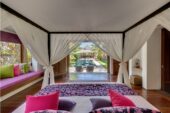 For a spot of privacy, the villa also offers a gorgeous one-bedroom suite located in its own individual walled garden, with a personal plunge pool. The villa may be rented as a four-bedroom unit along with this suite, or a three-bedroom haven minus it.