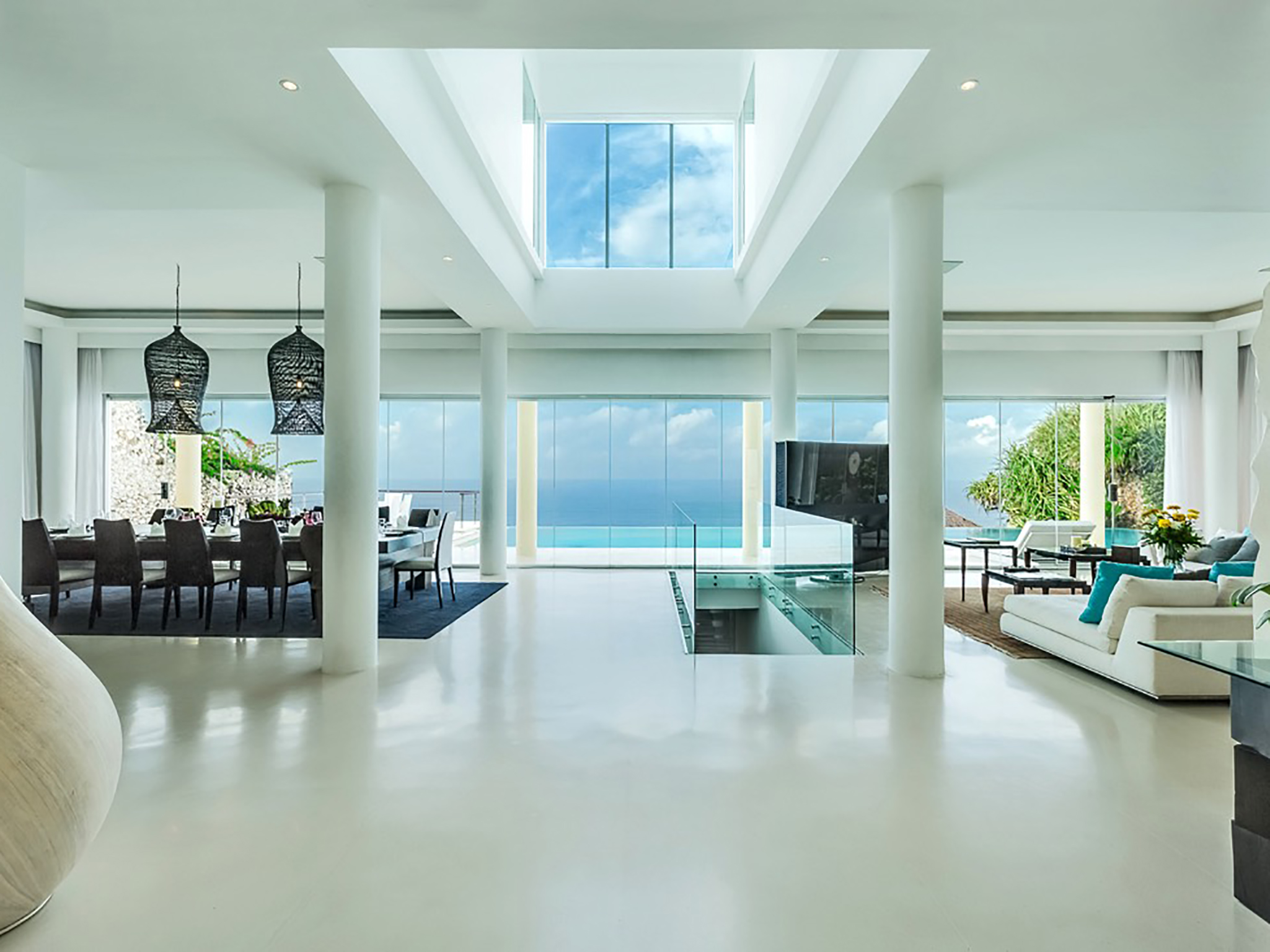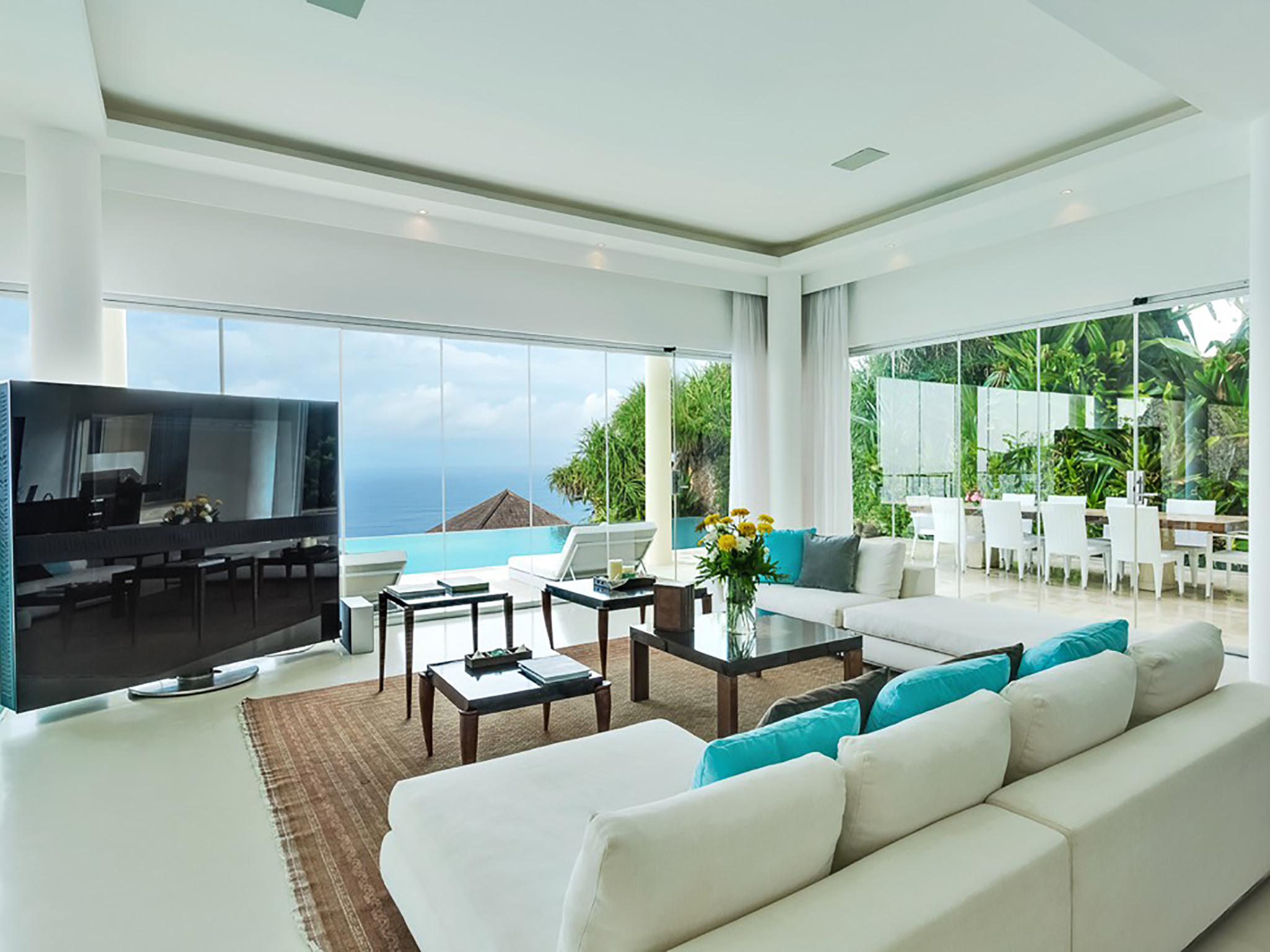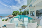 Villa Grand Cliff Ungasan is a contemporary-styled, five-bedroom residence, with wonderful ocean views, a 20 x 8m private swimming pool, breezy terraces and balconies, a cinema room, a billiard table, a lower deck with an alfresco jacuzzi tub, and relaxation gazebo.